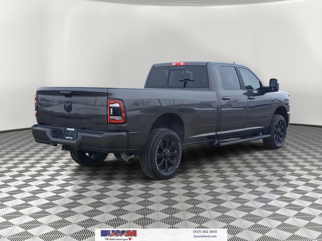 The exterior of this Ram 3500 Laramie exudes a commanding presence, thanks to the Night Edition package. The black accents, including the grille, badging, and mirror caps, create a bold, aggressive look that is sure to turn heads wherever you go.